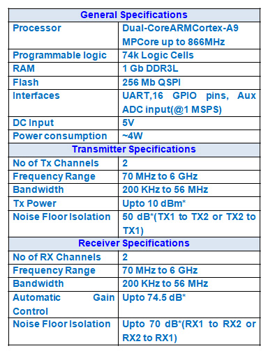 Excel SDR is the miniaturised 2x2 Software Defined Radio (SDR) comes with RF Transceiver and the Xilinx Programmable SoC. You can build your own wireless communication product using EXCEL SDR from RF-to-baseband processing. | ![]() |